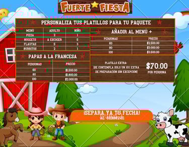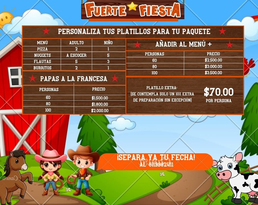 Los paquetes pueden ser personalizados y reservados para adaptarse a su celebración. A través de nuestro numero de contacto o vía WhatsApp: +528119982411